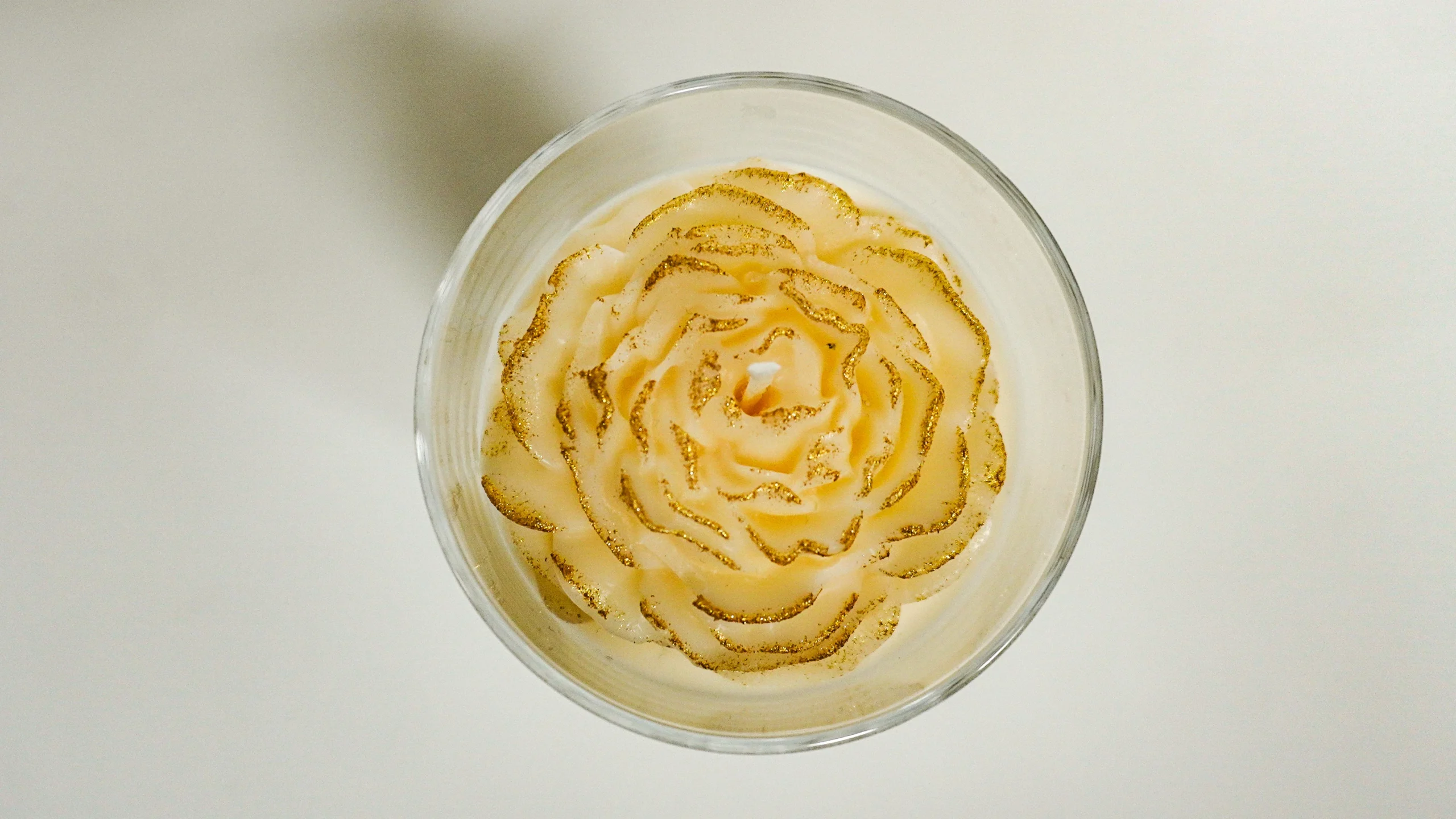 Finished with a rose-shaped top and subtle golden highlights, this candle is not just a source of light but a centerpiece of beauty. The cotton wick ensures a clean, even burn, making it as sustainable as it is stunning.