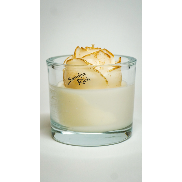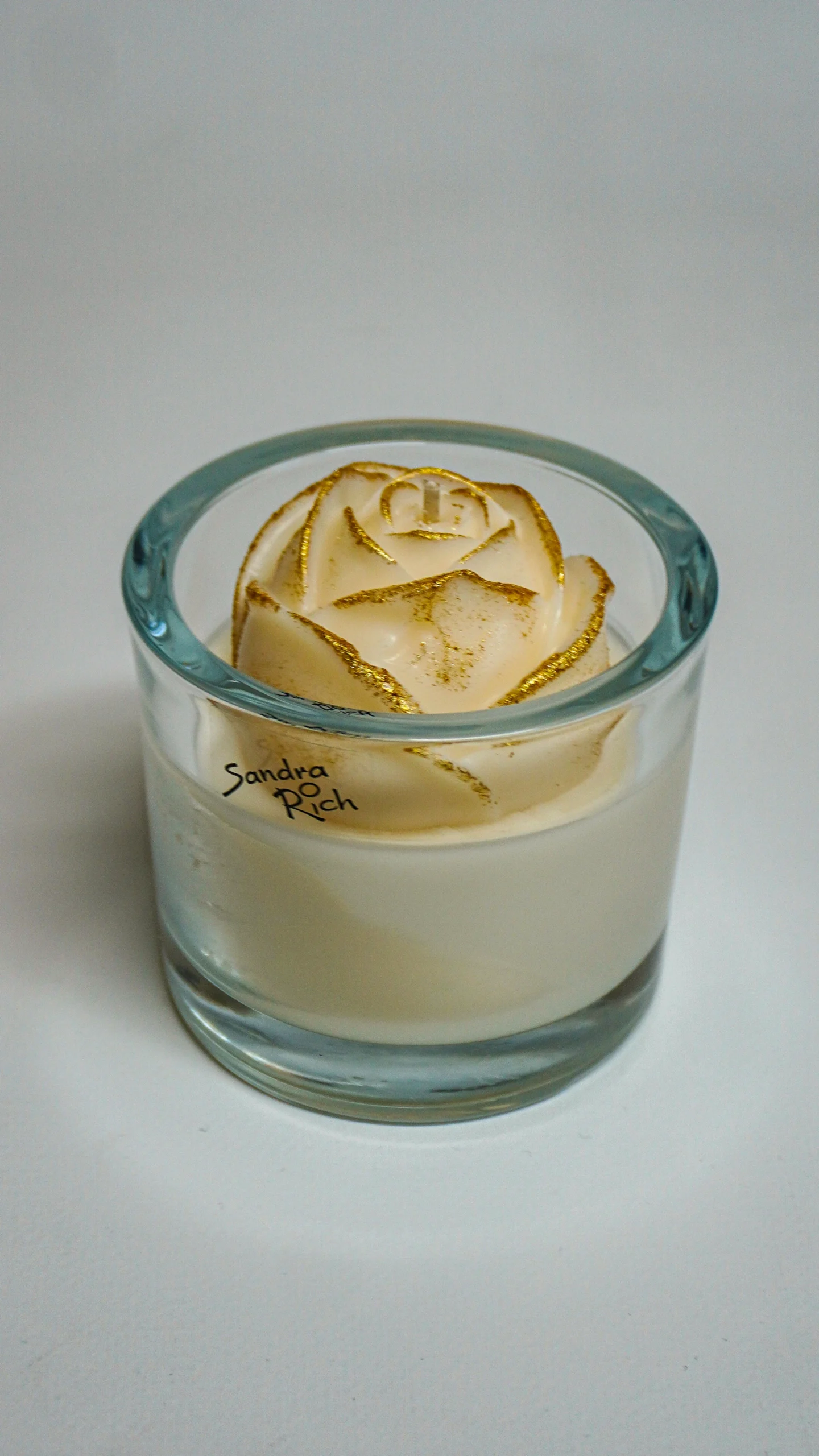 Finished with a rose-shaped top and subtle golden highlights, this candle is not just a source of light but a centerpiece of beauty. The cotton wick ensures a clean, even burn, making it as sustainable as it is stunning.